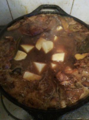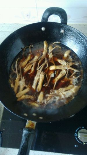 喜欢吃土豆的加入土豆,喜欢香菇的加香菇,喜欢蘑菇的加蘑菇,这个随意,喜欢土豆烂些的早加,这样比较入味,大概炖30分钟后加盐收汁。喜欢汤汁拌饭的就不要收的太厉害,但是也不要留太多汤汁,那样不够入味。