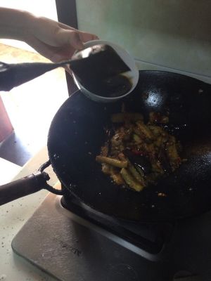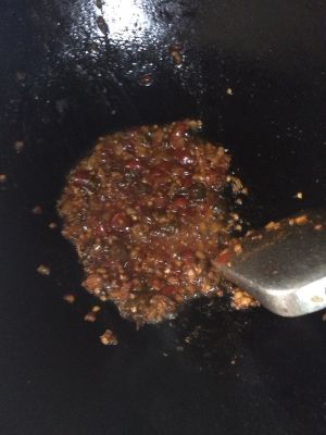 锅里倒入少许油,油热后,倒入剁椒和豆瓣煸香