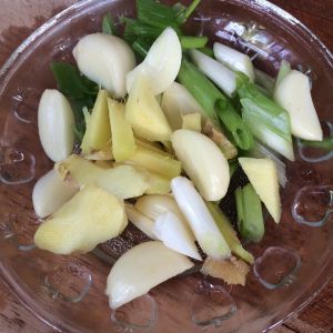 姜切末,姜末去腥~ 艾玛姜末都是爱你的形状哟~葱和干辣椒啥的看着买吧!都不是重点,我去菜市场的时候葱都买完了,我就米有用……干辣椒准备了但是没用上……