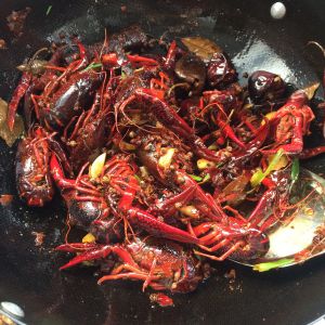 放入冰糖,上色后加入八角,然后将小龙虾倒入。