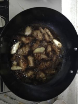 烹入料酒去腥,再倒入主料可乐。 大火烧开后,加入少许酱油,增加复合口味。大火继续烧两分钟排出腥气,然后转小火加盖焖制5分钟即可。