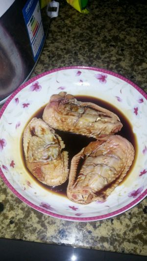 倒入可乐,浸过鸡翅三分之二即可,并放入花椒大料大蒜(整瓣),酱油三勺