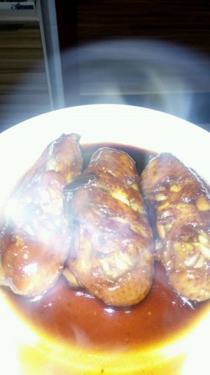 加可乐,没过鸡翅,适当加入冰糖与酱油,大火煮沸转至小火收汁,开动!
