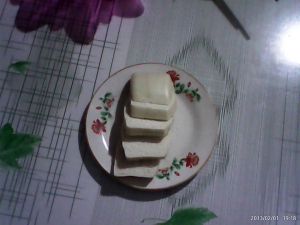做玫瑰样子的图,忘记拍下来了。就是捻成6块小圆面皮,呈阶梯样叠起,中间放一圆柱作为玫瑰花心,卷起来,再从中间一分为二,成为两朵玫瑰花