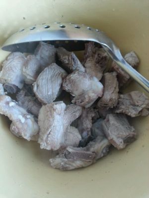 排骨用开水煮,去掉血水,免得血水粘着排骨,我就用筷子把排骨夹起来的。