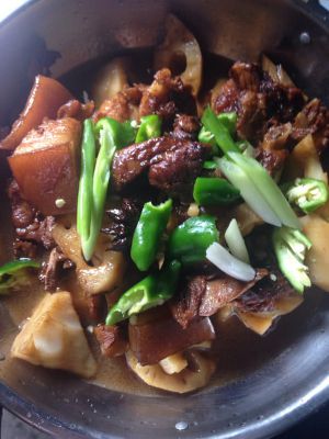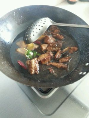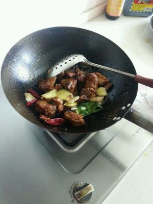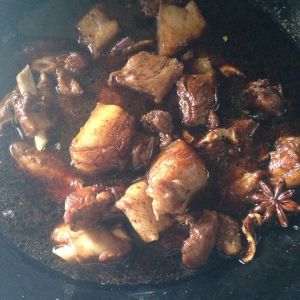 加适量加些开水,不要莫过肉,加几颗冰糖。烧一会帮助上色,快没水了在加水与肉平行,炖有15分钟。
