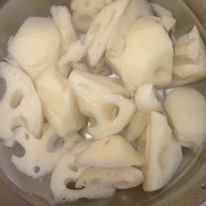 藕切滚刀块,放水漂一下。