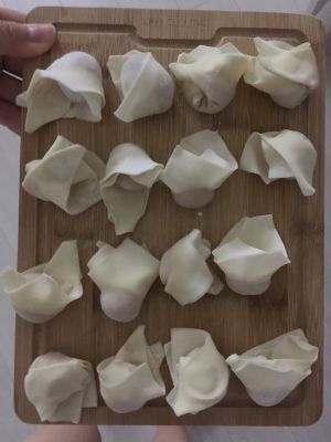 食材准备完毕,现在可以开始包抄手,方法有很多种,不会的朋友可以在网上搜索具体方法,这里就不一步步教大家了。