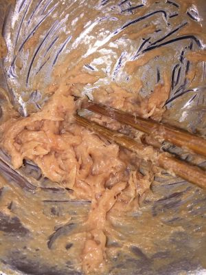 五花肉打成肉馅 加盐 胡椒粉 味精 蚝油 鸡蛋1个 姜末顺一个方向搅制上筋 加材料油搅匀