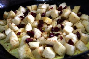 剩馒头的华丽变身,和鸡蛋饼合二为一,上面的馒头丁焦脆可口,下面蛋香软糯,还有蔓越梅干的酸甜口感综合在一起,不管是做早餐还是日常主食,都是很赞的,喜欢的话你也来试试吧!