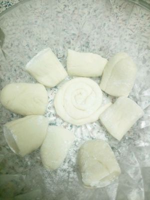 揉成这样光滑的长条,用刀均匀的分成等分的小剂子!