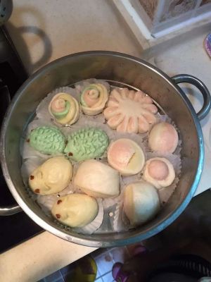 所有面团做完后基本上可以放入蒸烤箱100°蒸20分钟