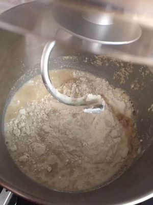 把蒸熟的南瓜,牛奶,鸡蛋(喜欢甜的可以加糖)面粉,酵母依次加入盆里,温水和面成光滑面团
