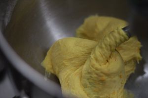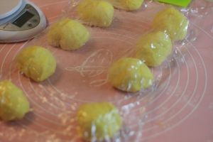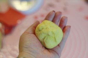把南瓜面团,平均分成35克的剂子,排气,收圆。