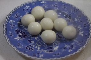 汤圆煮熟,沥干,放凉。