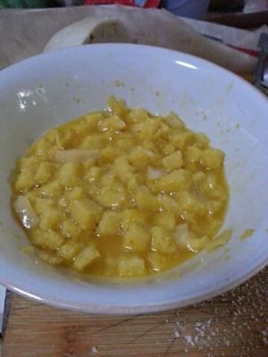 馒头切丁,放入搅拌好的鸡蛋中,加适量盐