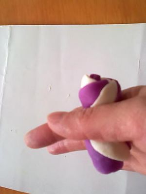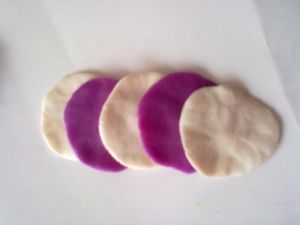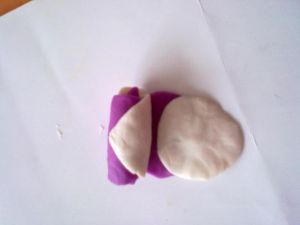 下面开始是橡皮泥演示的哈————待面团醒发至原来的两倍大后,取出在案板上再次揉搓,排出空气,切成一个个小剂子,擀成稍微厚点的圆形面皮