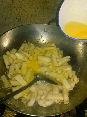 炒的金黄色然后放盐和调料翻炒几下就可以出锅了,因为加了鸡蛋炒的不会太焦哦