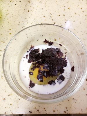 鸡蛋,牛奶,海苔,盐,放在一个玻璃碗里打匀
