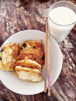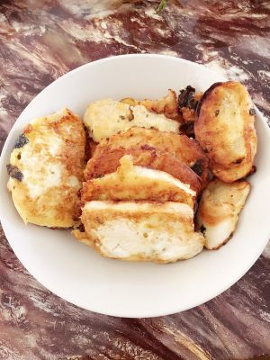 馒头切片,如果在冰箱冻一下会更好切些,我的有点碎了