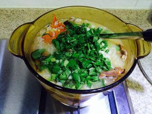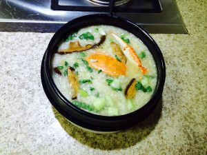 好饭配好盘,用石锅装上海鲜香菇青菜粥,是不是很高大上呢!