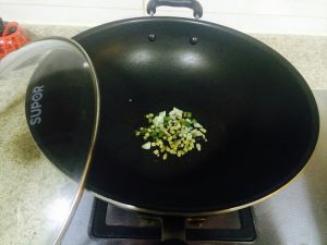 锅里倒油,待油热了,将葱姜蒜青椒炸锅