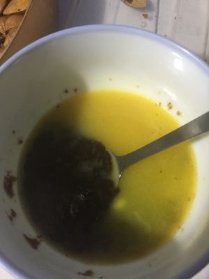 红糖把大块捻碎,黄油和红糖微波炉打半分钟,变成油状,