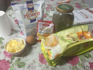 低粉200克+2克泡打粉过筛备用,黄油100克,全蛋液50克,红糖80克,核桃仁100克备用。
