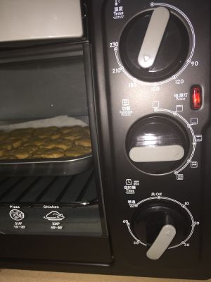 放入已提前预热的烤箱。如只一盘,中层,约十五至二十分钟。如两盘同烤,中层和上层,烤制途中需两盘互换,以免烤焦。现微黄即可关火,用余热烤制焦香即可,最后阶段需必切注意,烤糊了可就前功尽弃哎唉。切记!切记!!