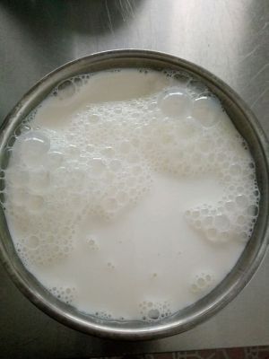 鲜牛奶和酸奶以10比1的比例倒入酸奶机的小盒