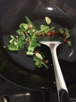 热锅下油爆香蒜和辣椒