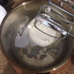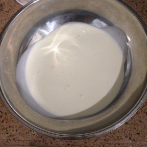 用打蛋器将淡奶油打散,再与溶液2混合搅拌均匀。代号:溶液3