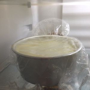 淡奶油打七分发,盖保鲜膜入冰箱冷藏