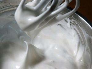 蛋白加适量白糖打发,打到硬性