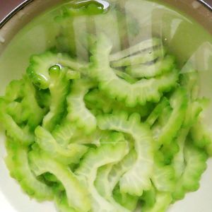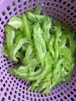 几秒钟后把苦瓜捞起来,用凉水过一下,沥干水分备用。