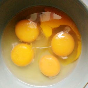 碗里面打上鸡蛋(我的是小土鸡蛋,平常3个就够了)
