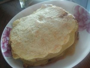 再加入适量的水,搅拌成糊状,电饼档预热后,刷油,一勺糊状奶酪土豆摊成饼,一面三分钟后翻面在一分钟就OK了