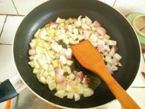 热锅冷油,倒入洋葱小火煸炒至出香盛出