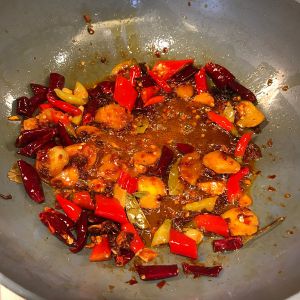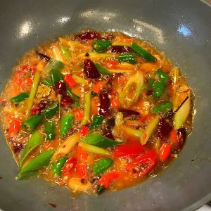 姜片蒜瓣花椒粒爆锅