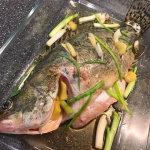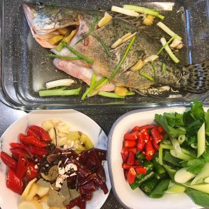 依旧是清江鱼 , 肉嫩刺少,这条鱼3斤半, 对应30L的烤箱来说有点大了。