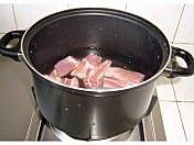 将排骨洗净剁成3厘米长段,将排骨放入锅煮至八成熟,捞出沥干待用