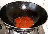 炒锅留少许油烧热,下入葱花,姜末爆香,下入1勺番茄酱炒匀