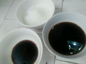 加入调味 (料酒,老抽,醋,糖的比例1:2:3:4)