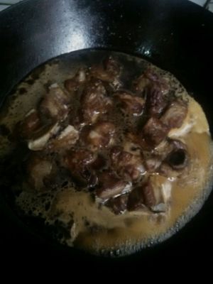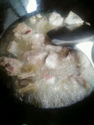 捞出排骨 锅里放油 加糖 差不多就加排骨 然后酱油 醋 千万别加味精 鸡精