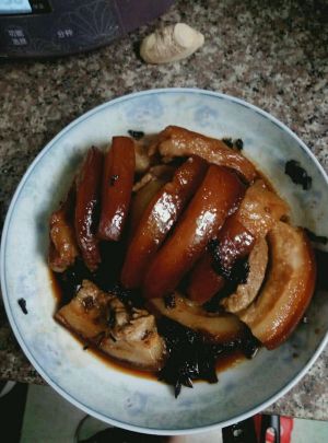 做好的肉上面盖个盘子,上蒸锅蒸2小时,起锅后把汤汁倒出来,把肉扣倒扣在盘子上再把汤汁淋在肉上,这样就可以开吃了