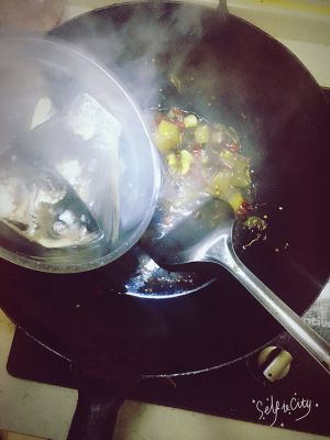 淋油:青椒切薄片段,喜欢吃辣的可以多加些青椒哦!均匀铺开在鱼肉上,将烧熟的油淋至青椒。