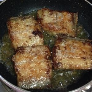 鱼煎的不太好,有点散了,如果时间够,可以用油把带鱼炸一下,那样会更好,不会碎