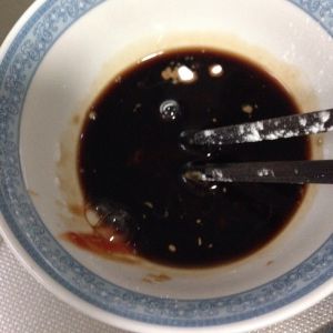 取大碗一只,以吃饭的勺子为准,一份为一勺,大家可以根据自己的材料增大倍数即可。取1勺花雕(或料酒),2勺生抽,3勺白糖,4勺米醋,5勺清水,调匀备用。