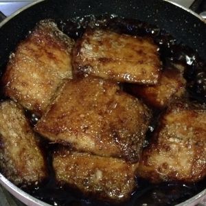 鱼煎至两面金黄时,倒入料汁,大火收汁即可