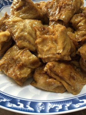 将所有的豆腐皮和料汁一起入锅煮,用小火。煮大概5分钟或者料汁收干,即可出锅!